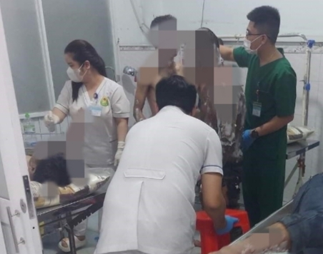 Các công nhân bị bỏng đang cấp cứu tại Bệnh viện đa khoa tỉnh.