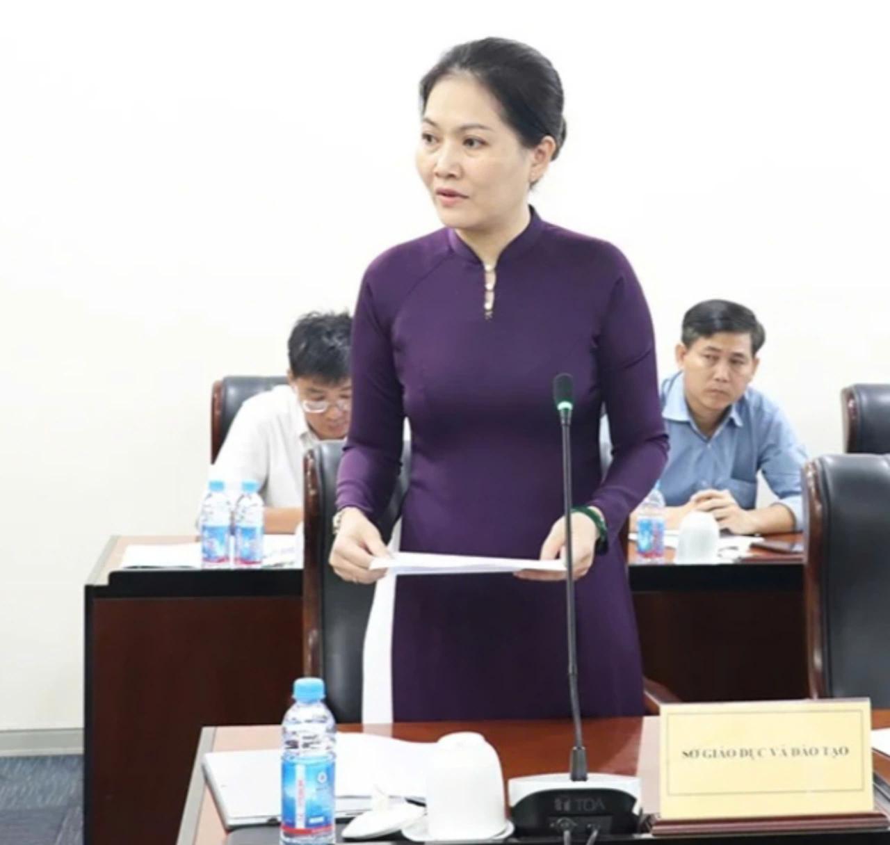 Bà Nguyễn Thị Nhật Hằng – Giám đốc sở Giáo dục và Đào tạo đã báo cáo các nội dung chính tại cuộc họp