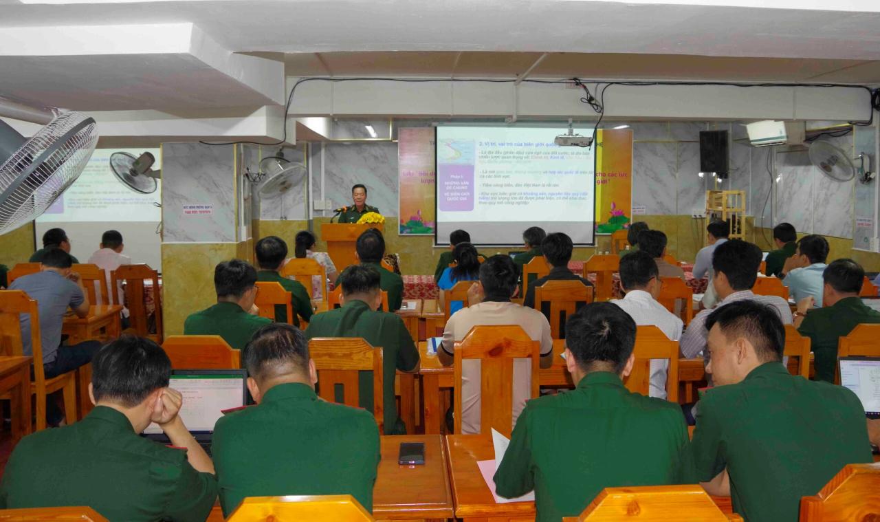Thiếu tướng Văn Ngọc Quế, Phó chủ nhiệm Chính trị Bộ đội Biên phòng tập huấn chuyên đề “Tình hình biên giới trên đất liền năm 2025”.