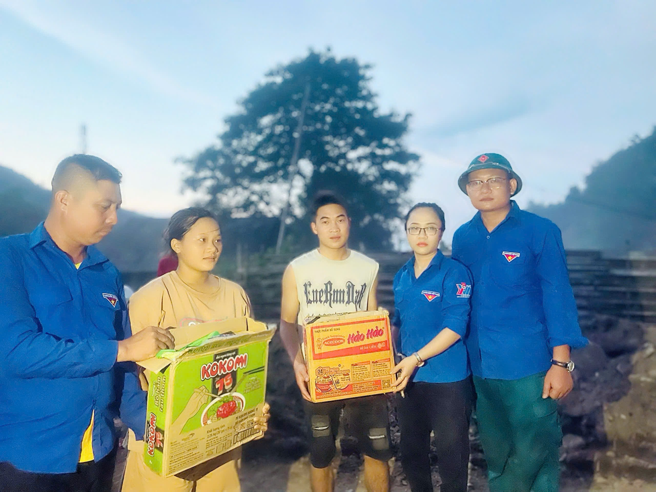 Bà Mai Thị Huyền Trang, Bí Thư Huyện Đoàn Kỳ Anh và ông Nguyễn Tiến Tiệp, Phó chỉ hủy trưởng, Ban CH Quân sự xã Kỳ Tây và Ông Trần Đình Thế đã vượt hơn 15 km bằng đường bộ đến với bà con Thôn Ngải Trồ.