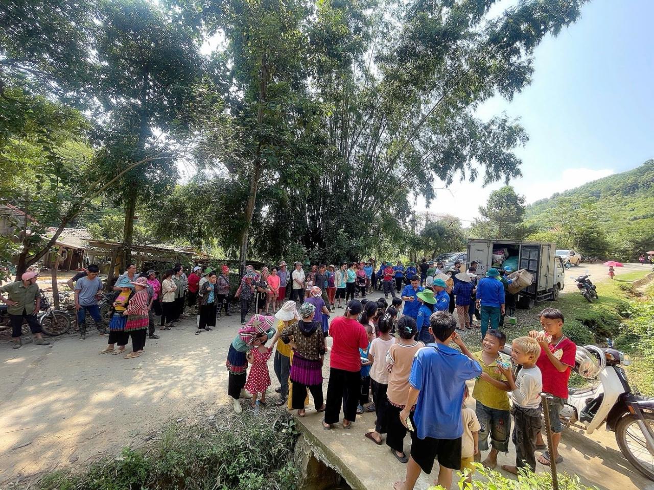 Đoàn công tác thiện nguyện trao quà cho bà con bị ảnh hưởng bảo số 3 tại bản A Mú Sung, huyện Bát Xát, tỉnh Lào Cai.