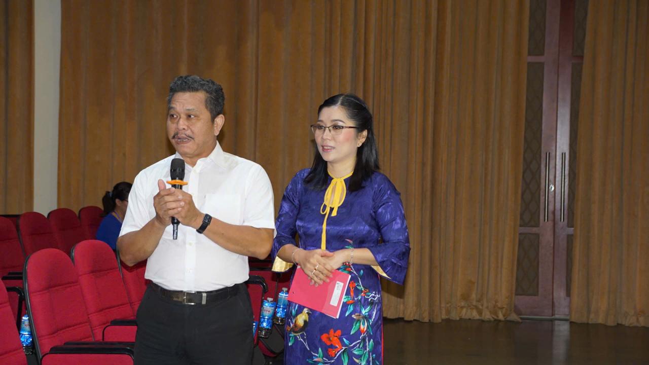 Thầy Trần Văn Cường – Cán bộ Phòng Giáo dục phổ , Sở GD&ĐT TP.HCM, khẳng định cải lương là công cụ hữu hiệu để học sinh hiểu sâu hơn về văn hoá bản địa; NSƯT – Đạo diễn Đức Bảo, đại diện Nhà hát Kịch Sân khấu 5B, người trực tiếp tham gia dàn dựng và chia sẻ nhiều câu chuyện hậu trường đầy tâm huyết .