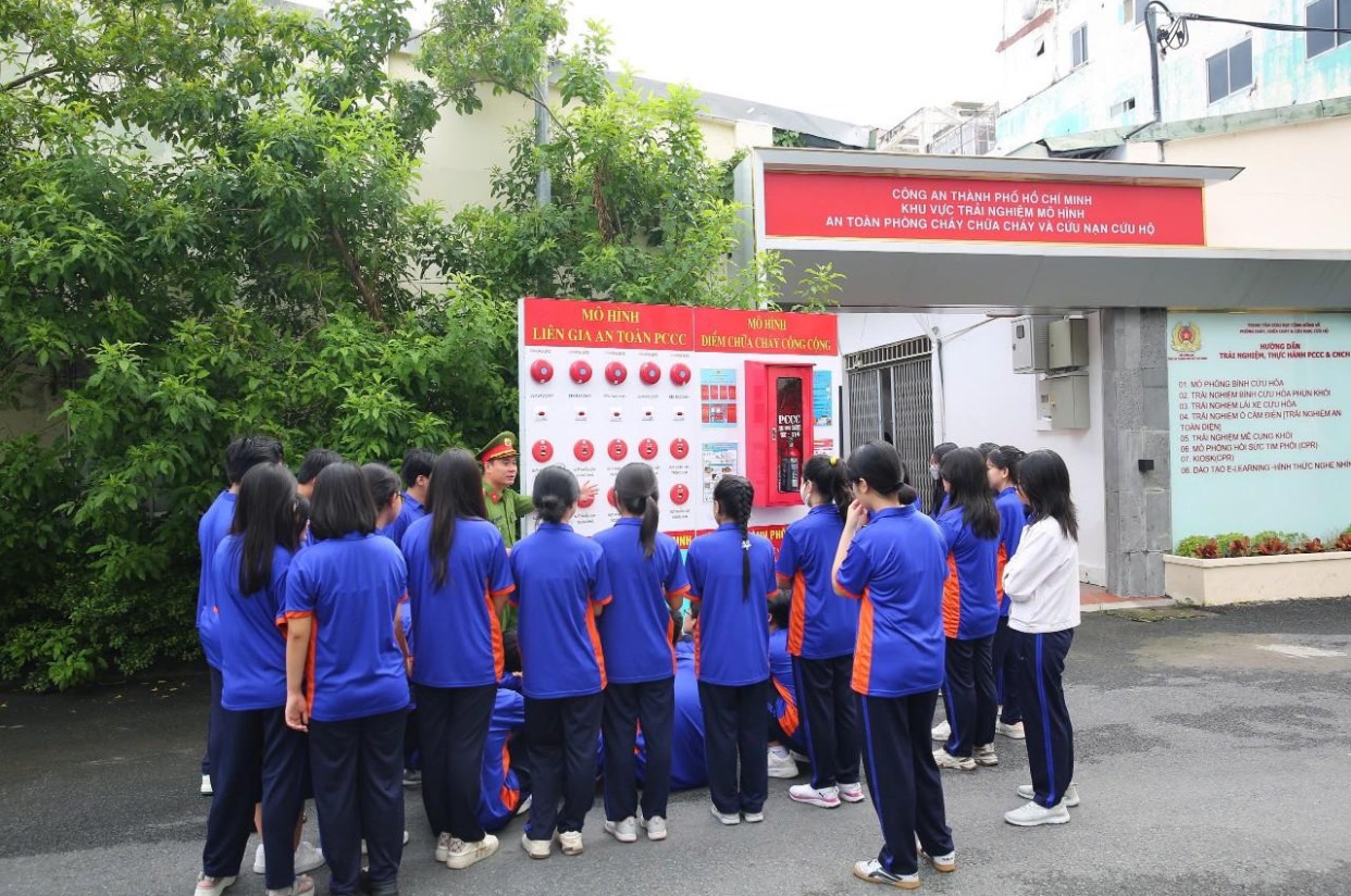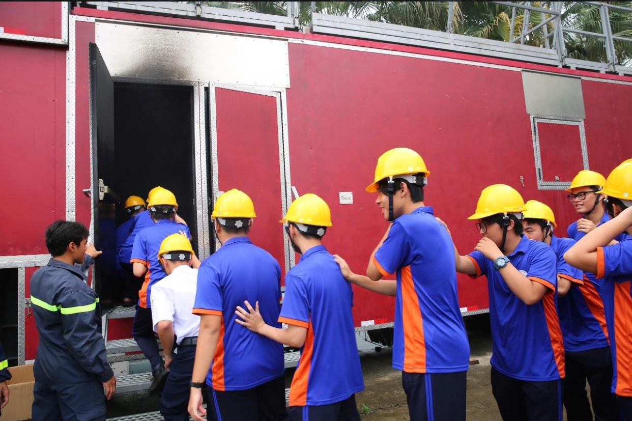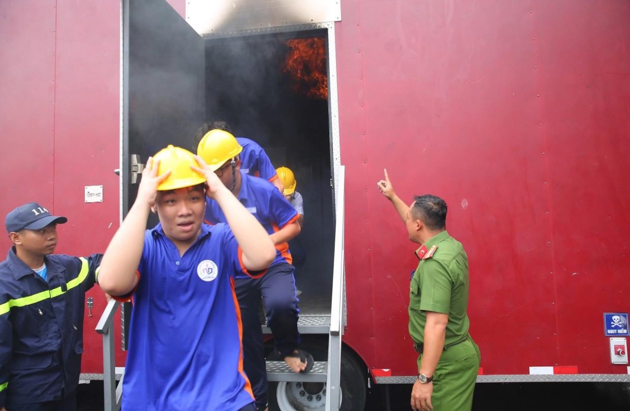 Sau đó, các em học sinh được trải nghiệm thực hành thoát hiểm trong mô hình mê cung khói, thực hành sử dụng trang phục chữa cháy và di chuyển, Thực hành thoát nạn trên cao sử dụng dây hạ chậm, thực hành di chuyển thoát nạn trong mô hình fireblast, Thực hành sử dụng lăng, vòi phun nước chữa cháy, Thực hành thoát nạn bằng xe thang 56m, Thực hành dùng bình chữa cháy dập tắt đám cháy, Thực hành rải vòi chữa cháy, Thực hành di chuyển người bị nạn…