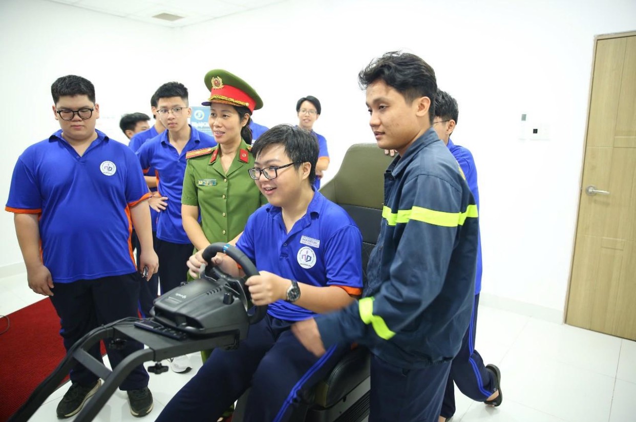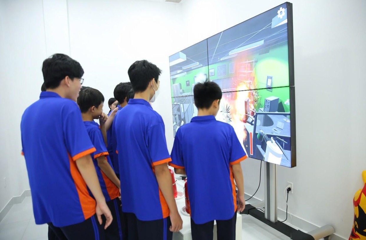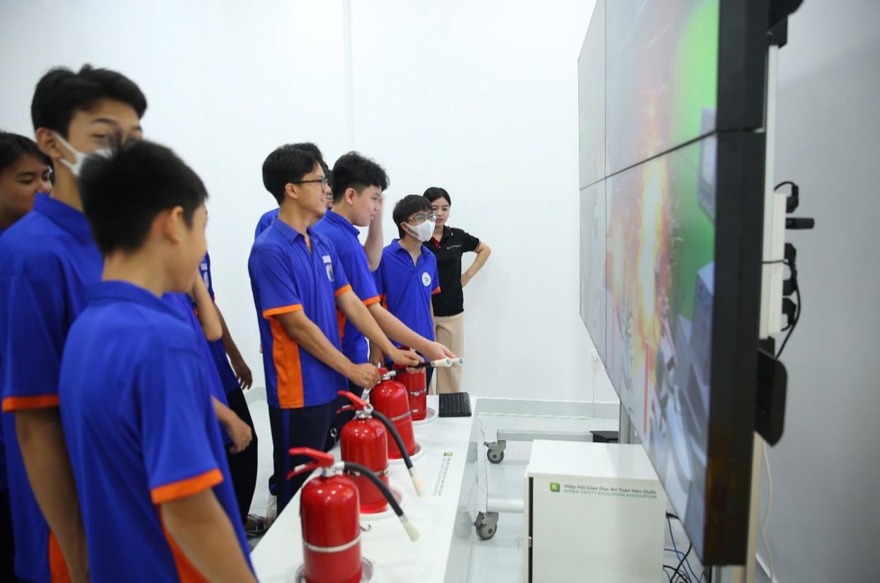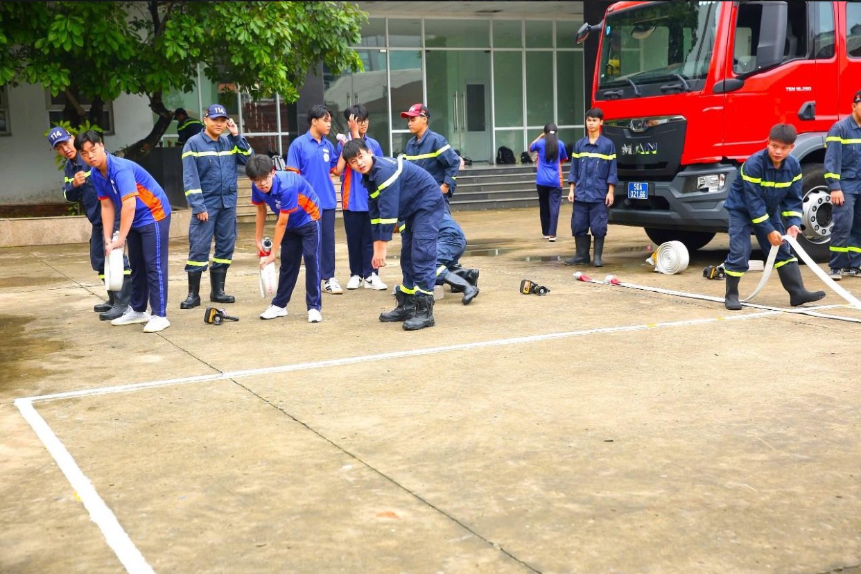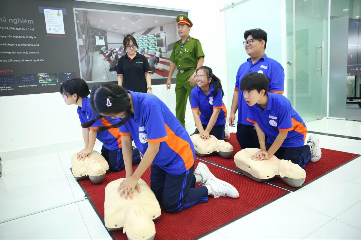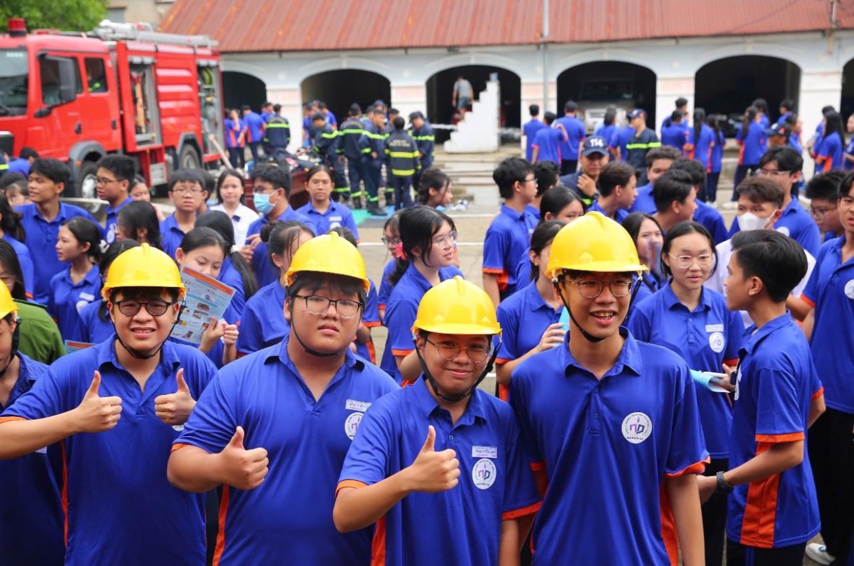 Học sinh Trường THPT Nguyễn Du tham gia trải nghiệm tại Trung tâm giáo dục cộng đồng về PCCC&CNCH