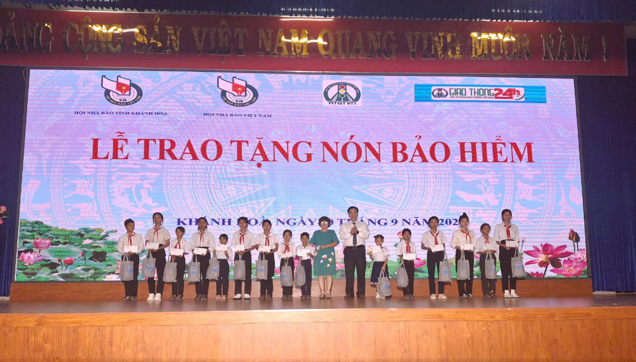 Hội An toàn Giao thông phía Nam trao tặng nón bảo hiểm cho các phóng viên, nhà báo, ngư dân và học sinh có hoàn cảnh khó khăn tại tỉnh Khánh Hòa.