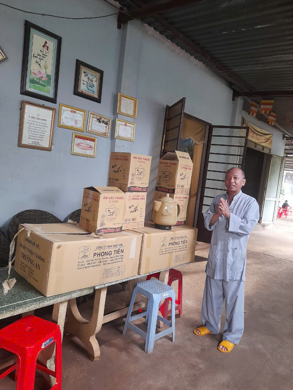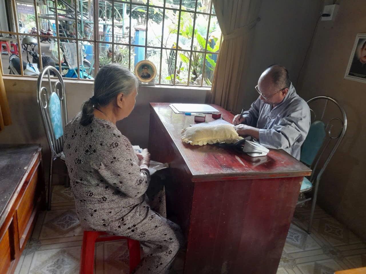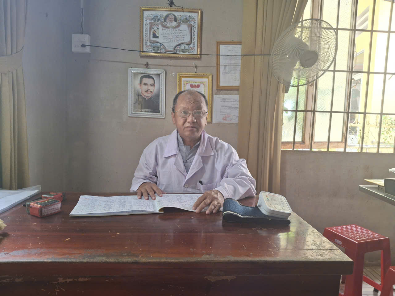 Phòng chuẩn trị Y học Cổ truyền Linh Quang 2, tại khu phố 1, Dưỡng Đường, phường Suối Tre, TP. Long Khánh, tỉnh Đồng Nai. Ở đây không chỉ khám chữa bệnh miễn phí mà còn là điểm tựa tinh thần của người bệnh. Được tận mắt thấy sự ân cần, miệt mài khám bệnh, bốc thuốc cho người dân, chúng tôi mới phần nào hiểu được sự vất vả cũng như niềm đam mê của thầy dành cho công việc cứu người hơn 20 năm qua.