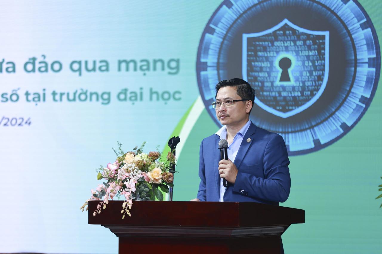 Phát biểu khai mạc, PGS.TS. Trần Việt Dũng, Phó Hiệu trưởng Đại học Luật TP.HCM cho biết, Đại học Luật TP.HCM không chỉ tập trung vào việc trang bị kiến thức chuyên môn mà rất chú trọng việc nâng cao kiến thức, kỹ năng tự bảo vệ thông tin cá nhân và phòng chống lừa đảo trên không gian mạng, giúp các bạn sinh viên vững vàng hội nhập trong bối cảnh chuyển đổi số đang diễn ra sâu rộng và mạnh mẽ như hiện nay.
