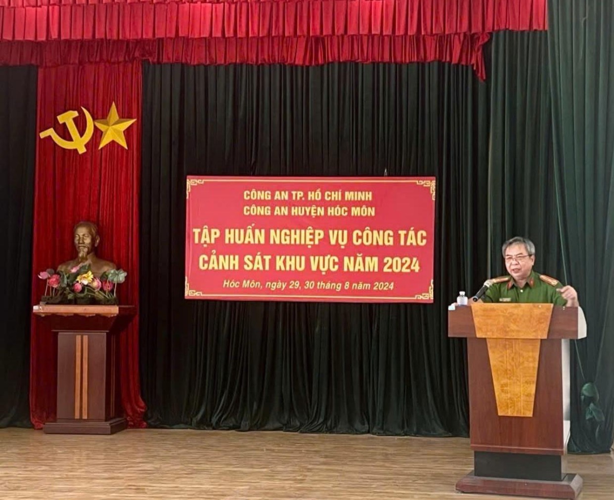 Thực hiện theo Kế hoạch số 3695/KH-CATP-PC06 ngày 05/7/2024 của CATP; Công an Huyện Hóc môn đã xây dựng và triển khai Kế hoạch số 4468/KH-CAHM-QLHC ngày 11/7/2024 về tổ chức tập huấn nghiệp vụ công tác CSKV năm 2024. Ngày 29/8/2024 tại Hội trường Đội CS PCCC-CNCH, Công an huyện Hóc Môn đã khai mạc và tổ chức tập huấn Nghiệp vụ CSKV cho 201 đồng chí CSKV đang phụ trách ô địa bàn 12 xã, thị trấn thuộc huyện Hóc Môn. Đến dự và chủ trì triển khai, quán triệt lớp tập huấn có Đ/c Thượng tá Nguyễn Phúc Thiện – Phó Trưởng Công an huyện; đại diện BCH các Đội nghiệp vụ và đại diện BCH Công an các xã, thị trấn, cùng lực lượng CSKV 12 xã thị trấn hiện đang phụ trách Ô địa bàn cơ sở. Công an huyện đã phân công chỉ huy các đội nghiệp vụ có năng lực, trình độ kiến thức nghiệp vụ và kinh nghiệm công tác cùng các đồng chí đã được tham gia tập huấn tại Bộ Công an, Công an Thành phố về chuyên đề công tác CSKV để thực hiện báo cáo cho lớp tập huấn. Ngoài ra triển khai các biện pháp kiểm danh, kiểm diện người sau cai, người nghiện, người sử dụng trái phép chất ma tuý để thực hiện quản lý, phòng ngừa và đấu tranh với tội phạm ma tuý, theo quan điểm chỉ đạo của Bộ Công an “Ma tuý là tội phạm của các loại tội phạm”. Trong đó lực lượng CSKV có vai trò rất quan trọng trong công tác này, góp phần đảm bảo ANTT, phòng chống tội phạm, các hành vi vi phạm pháp luật và tệ nạn xã hội tại địa phương.