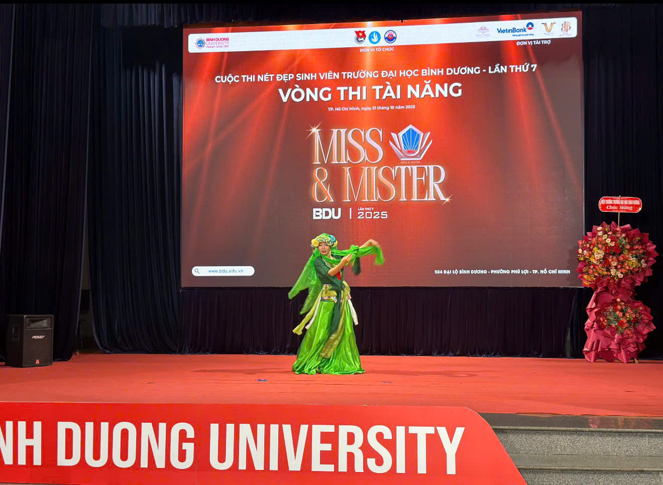 Vòng thi Tài năng cuộc thi “Nét đẹp Sinh viên Trường Đại học Bình Dương lần thứ VII – Miss & Mister BDU 2025” khẳng định bản lĩnh và tinh thần sáng tạo của thế hệ sinh viên trong kỷ nguyên hội nhập.
