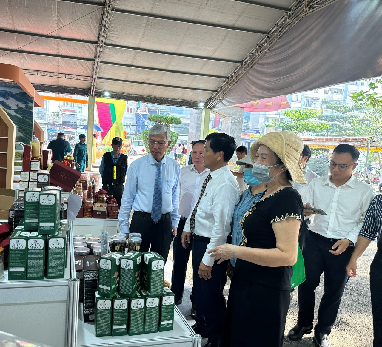 Lãnh đạo Thành phố và lãnh đạo các sở ban ngành cùng tham quan các sản phẩm tại tuần lễ OCOP.