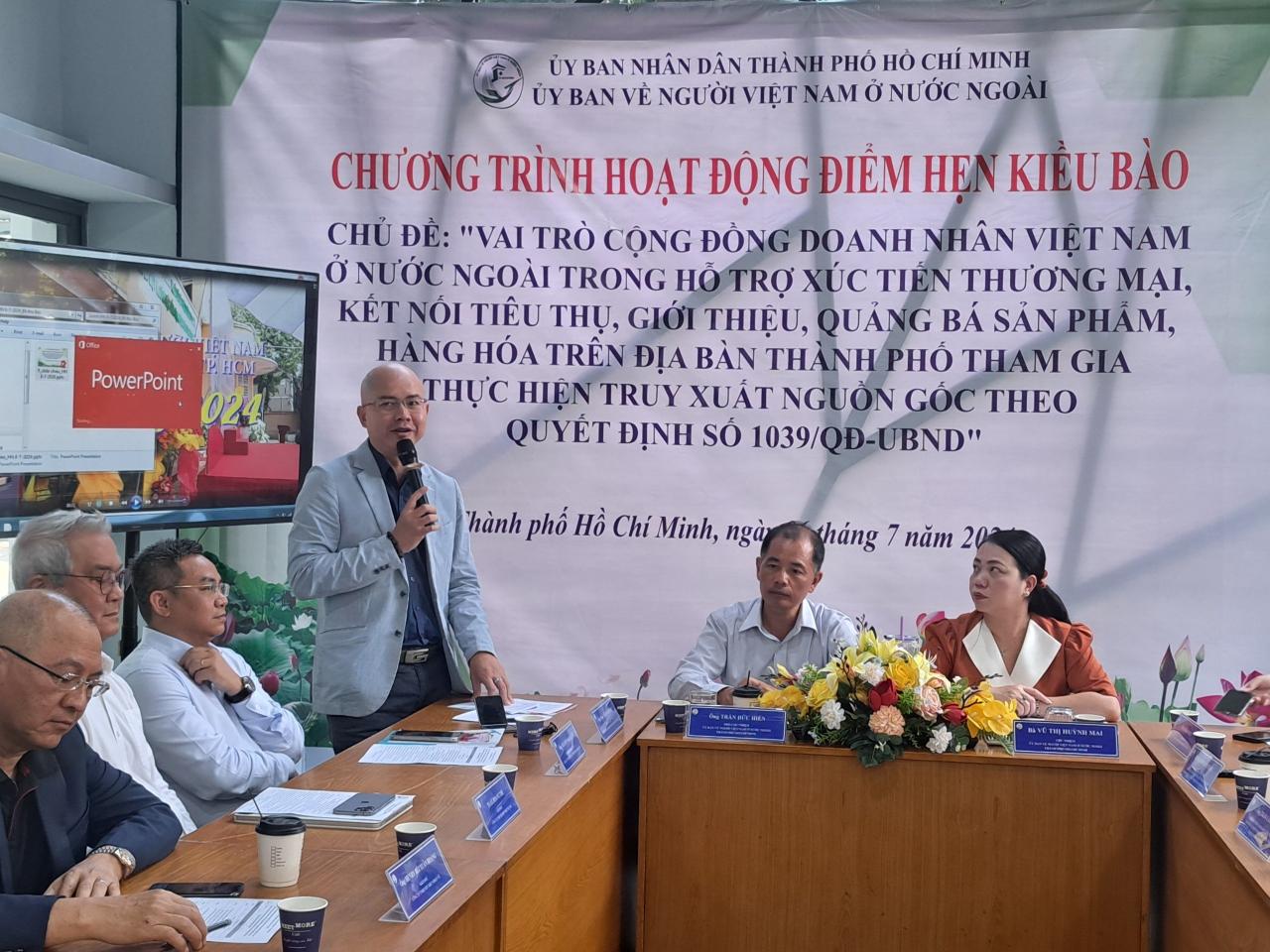Với chủ đề “Vai trò cộng đồng doanh nhân Việt Nam ở nước ngoài trong hỗ trợ xúc tiến thương mại, kết nối tiêu thụ, giới thiệu, quảng bá sản phẩm, hàng hóa trên địa bàn Thành phố Hồ Chí Minh tham gia thực hiện truy xuất nguồn gốc theo Quyết định số 1039/QĐ-UBND.”