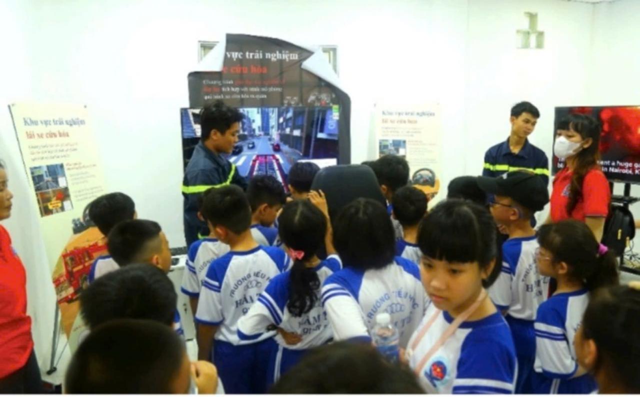 Đặc biệt, các em học sinh đã được tham quan, trải nghiệm mô hình thực tế ảo: Khách tham quan đã được cán bộ Phòng PC07, chuyên gia Hiệp hội giáo dục an toàn Hàn Quốc hướng dẫn trải nghiệm, thực hành các nội dung thực tế ảo gồm: Hồi sức tim, phổi (CPR); sử dụng bình chữa cháy để dập tắt đám cháy; Trải nghiệm an toàn sử dụng điện; Trải nghiệm sơ cấp cứu người bị nạn; Trải nghiệm công nghệ thực tế ảo.