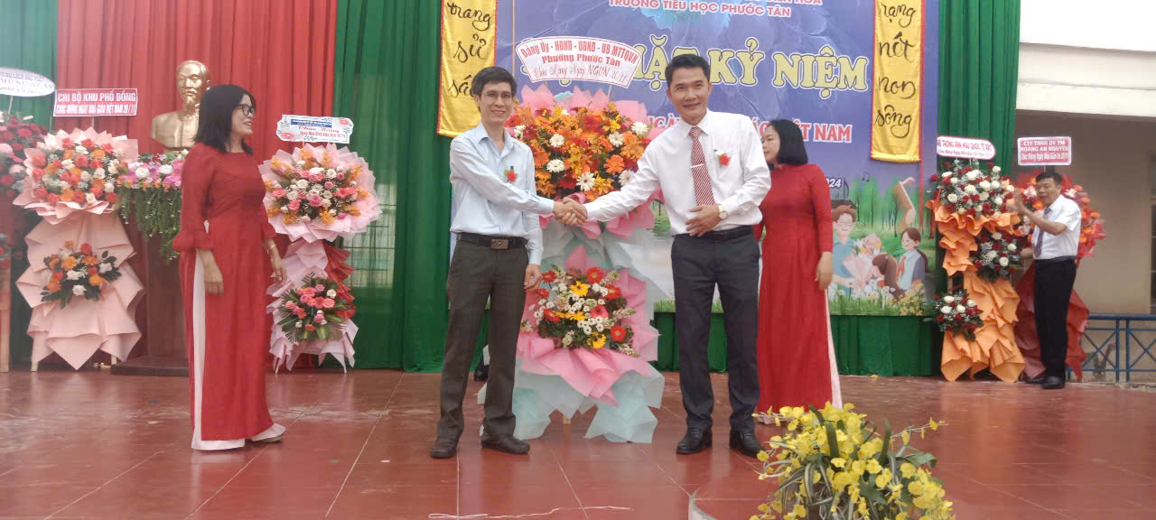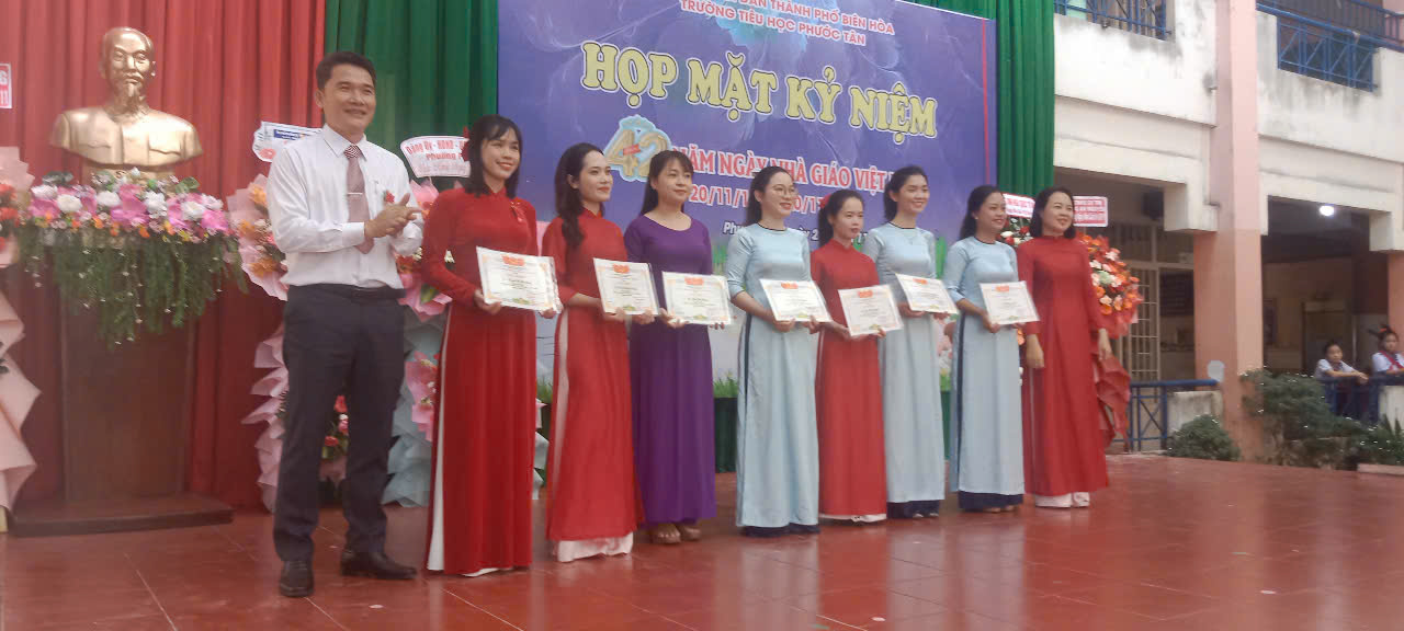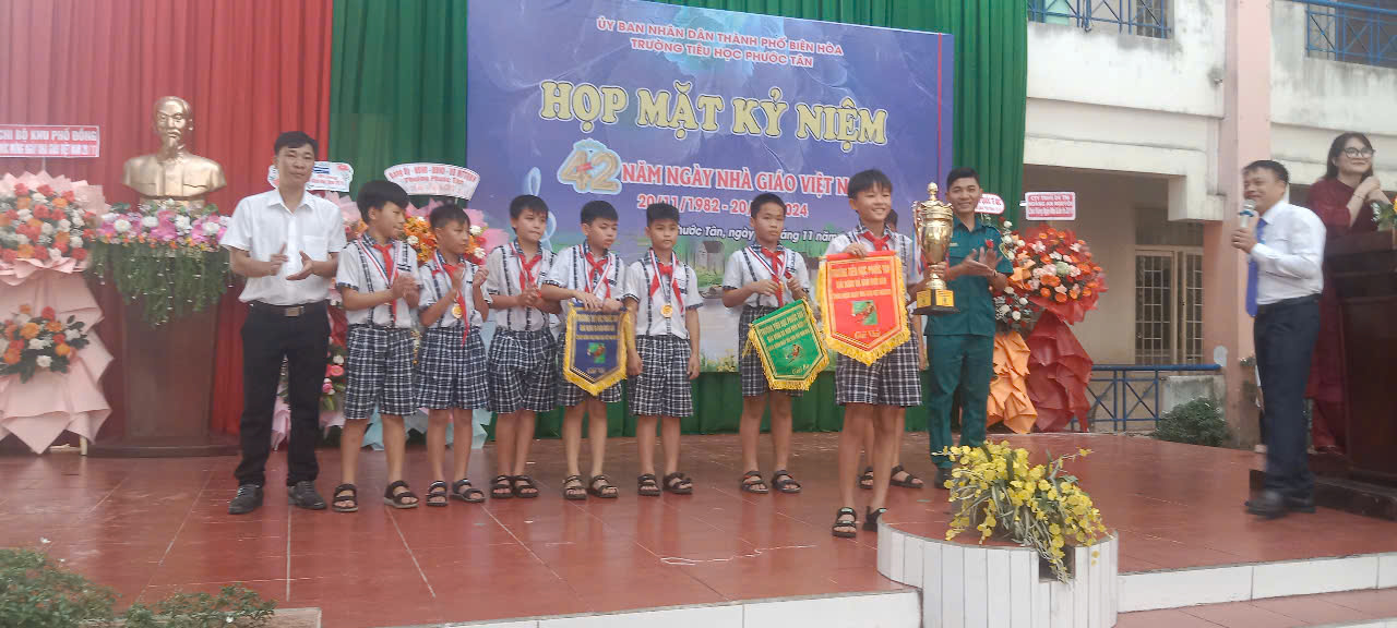 Sáng ngày 20/11, tại Trường tiểu học Phước Tân (phường Phước Tân, TP. Biên Hòa) đã tổ chức Họp mặt kỷ niệm 42 năm ngày Nhà giáo Việt Nam (20/11/1982 – 20/11/2024). Tham dự có ông Trần Thế Biên-Phó Bí thư Đảng ủy-Chủ tịch HĐND phường; ông Vũ Chí Thống-Chỉ huy Trưởng Ban chỉ huy Quân sự phường; bà Trương Thị Mỹ Duyên-Phó Bí thư Đoàn phường; về phía nhà trường có thầy Nguyễn Đình Thỏa-Hiệu Trưởng nhà trường; cô Hoàng Thị Mỹ Hồng-Phó Hiệu Trưởng nhà trường; cô Vũ Thị Thanh Thủy- Phó Hiệu Trưởng nhà trường cùng Đại diện CMHS….