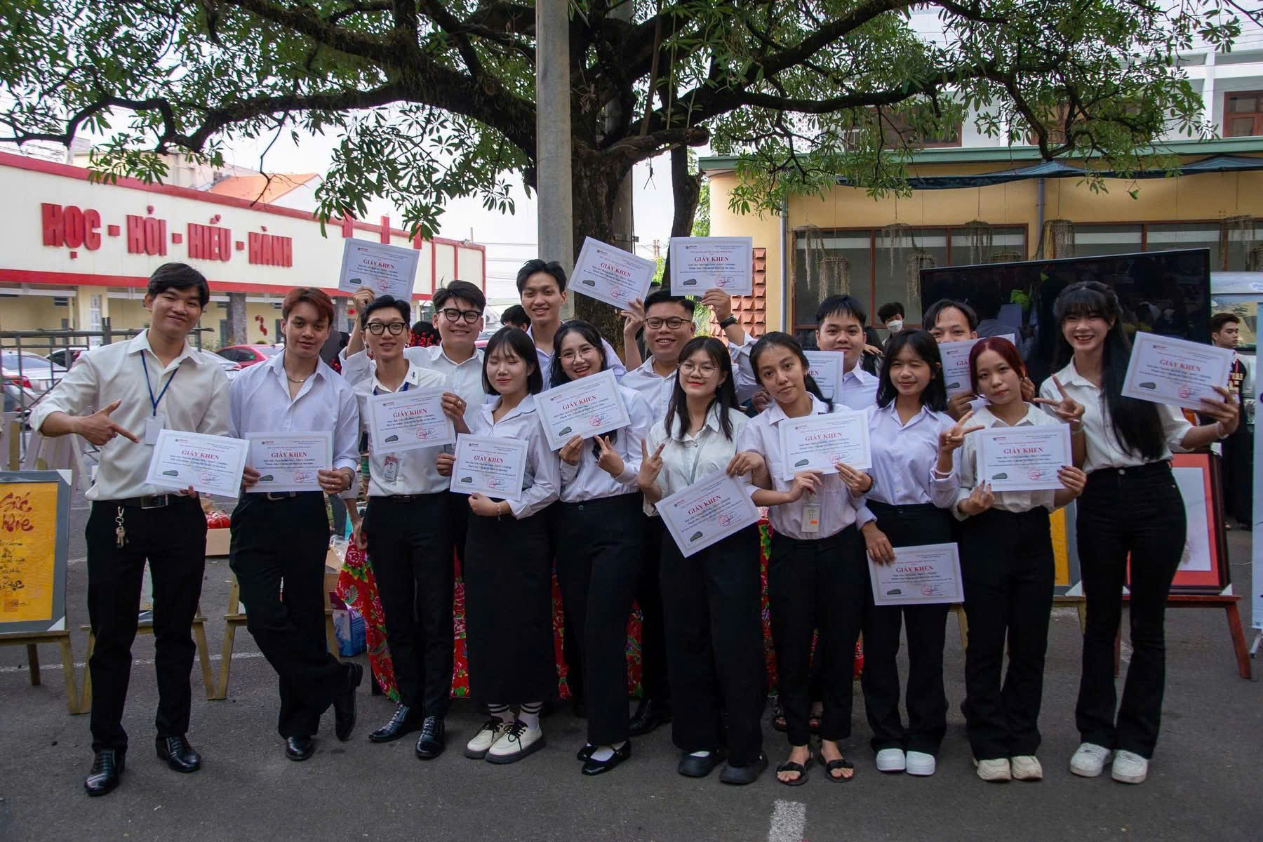Các Đoàn viên CLB Thuốc và Sức khỏe BDU được vinh dự nhận Giấy khen của Hiệu trưởng Trường Đại học Bình Dương. Ảnh Nam Phong