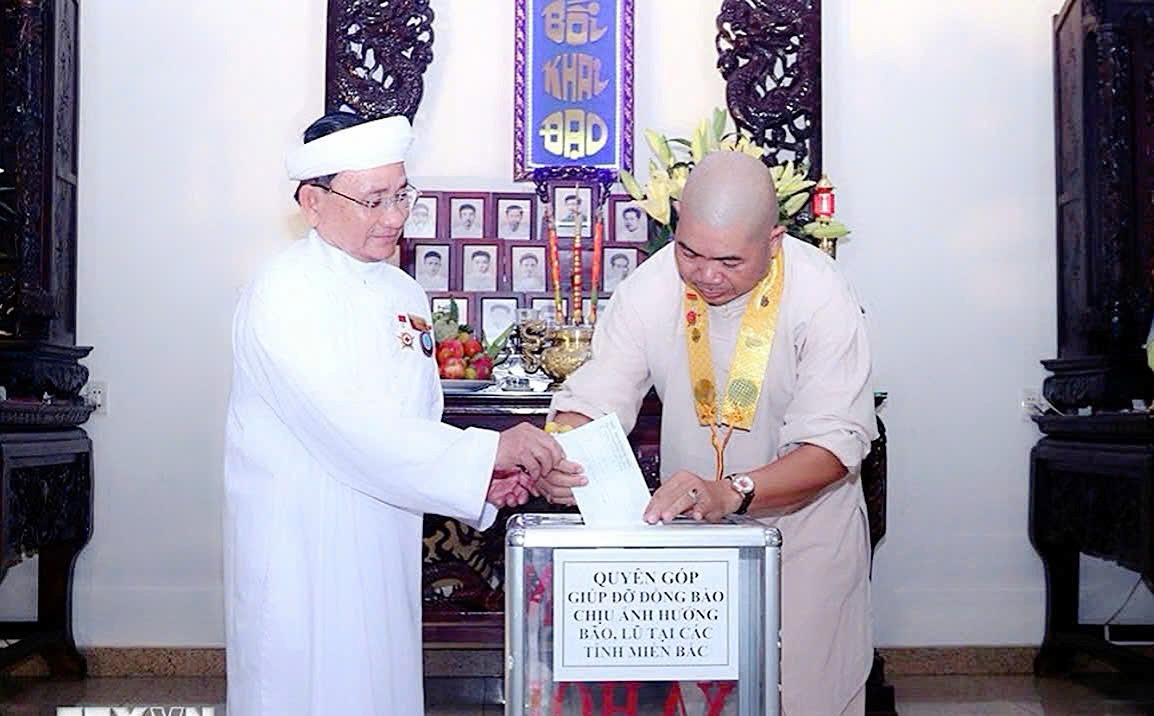 Trong lễ kỷ niệm năm thứ 99 khai đạo Cao Đài tại Thành phố Hồ Chí Minh, Ban Cai quản Nam Thành Thánh thất đã phát động quyên góp của đạo hữu, đại biểu tham dự lễ kỷ niệm kịp thời đóng góp một phần kinh phí để hỗ trợ cho đồng bào các tỉnh miền Bắc khắc phục hậu quả, ổn định cuộc sống, đối với người dân vùng bão lũ.