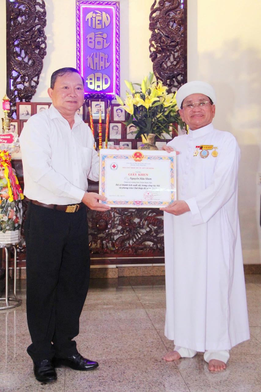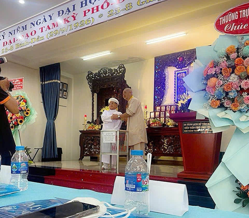 Ông Phạm Đình Vương, Trưởng Văn Phòng đại diện Trung ương Hội VACHE Tại TP. HCM kiêm Giám đốc Trung Tâm UNESCO Văn Hoá Thông Tin Truyền Thông và ông Nguyễn Hữu Nhơn, Chánh Hội trưởng Nam Thành Thánh Thất cùng các đại biểu