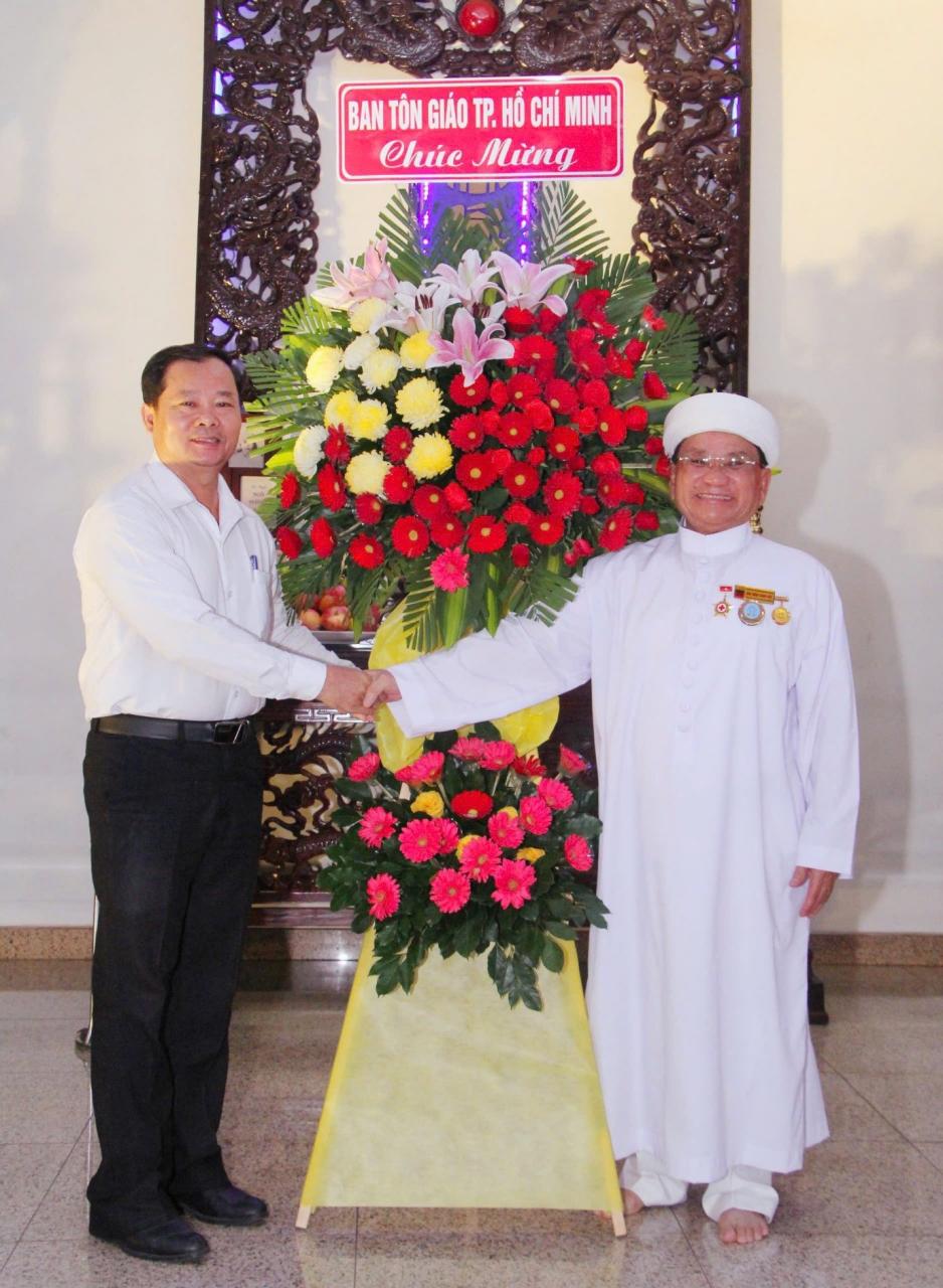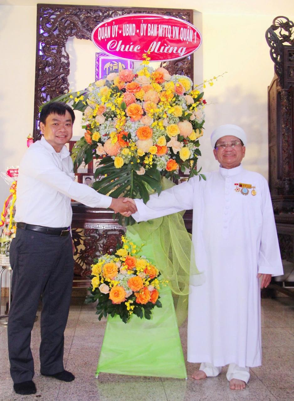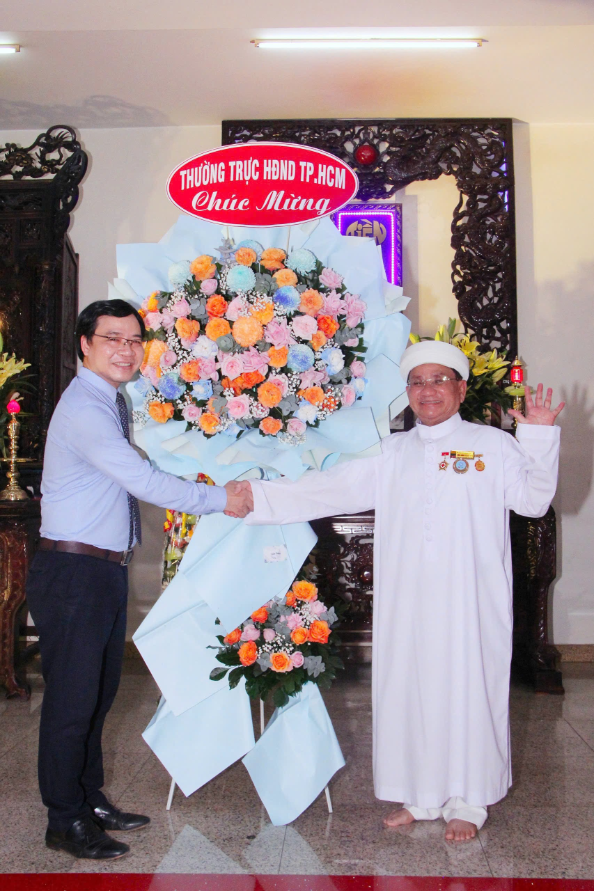 Đại diện HĐND TP. HCM trao tặng hoa cho ông Nguyễn Hữu Nhơn chúc mừng đại lễ