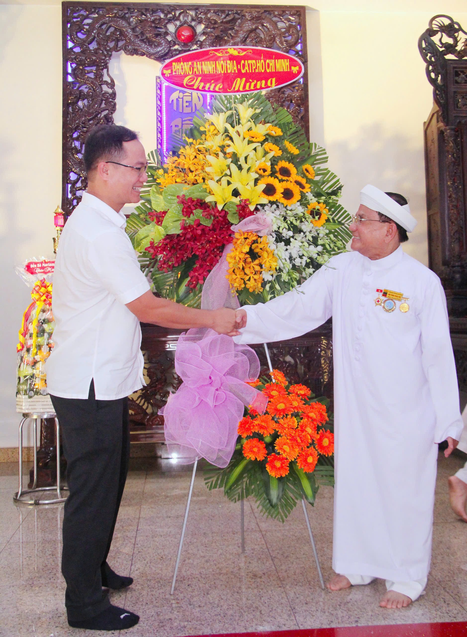 Đại diện Phòng An Ninh Nội Địa CA TP. HCM trao hoa chúc mừng